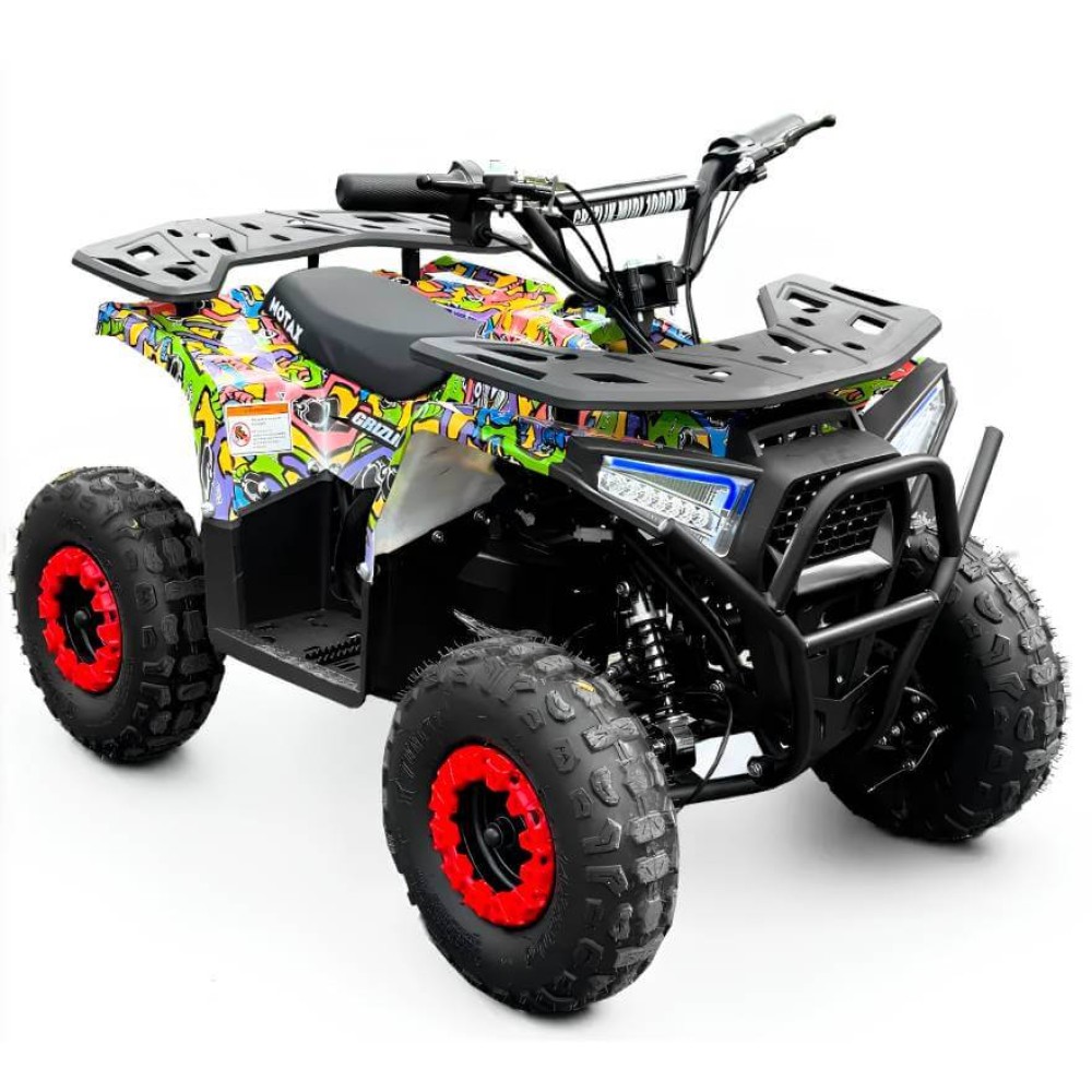 Детский электроквадроцикл Motax Grizlik Midi E1000 BW — современный и мощный вариант с электродвигателем мощностью 1000 Вт, который развивает скорость до 45 км/ч. Такая скорость предлагает оптимальное сочетание динамики и безопасности для юных водителей, обеспечивая увлекательные и контролируемые поездки.
