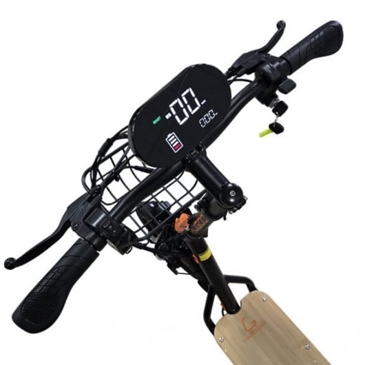 Одно из основных преимуществ модели – наличие передней корзины и небольшого кофра на задней части. Также стоит отметить большой и яркий дисплей с четким шрифтом, что упрощает использование. Управление осуществляется кнопками и переключателями на руле: включение света, поворотников или звукового сигнала требует лишь одного движения пальцем. Низкая рама облегчает посадку, так как не нужно высоко поднимать ногу. Эта модель прекрасно подходит людям разного роста, поскольку сиденье и руль регулируются по высоте. Дополнительный комфорт во время поездки обеспечивают два передних амортизатора и пружины в конструкции сиденья. За безопасность отвечают дисковые механические тормоза.