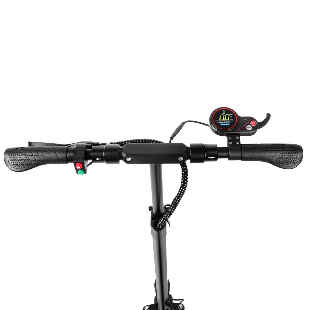 Для повышения комфорта и безопасности электросамокат оборудован передними и задними амортизаторами, механическими барабанными тормозами, а также светодиодной фарой и стоп-сигналом. Регулируемая высота руля и наличие удобного сиденья делают поездки ещё более приятными. Встроенный дисплей и бортовой компьютер предоставляют всю необходимую информацию о состоянии устройства.