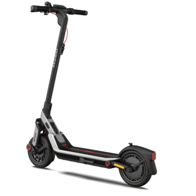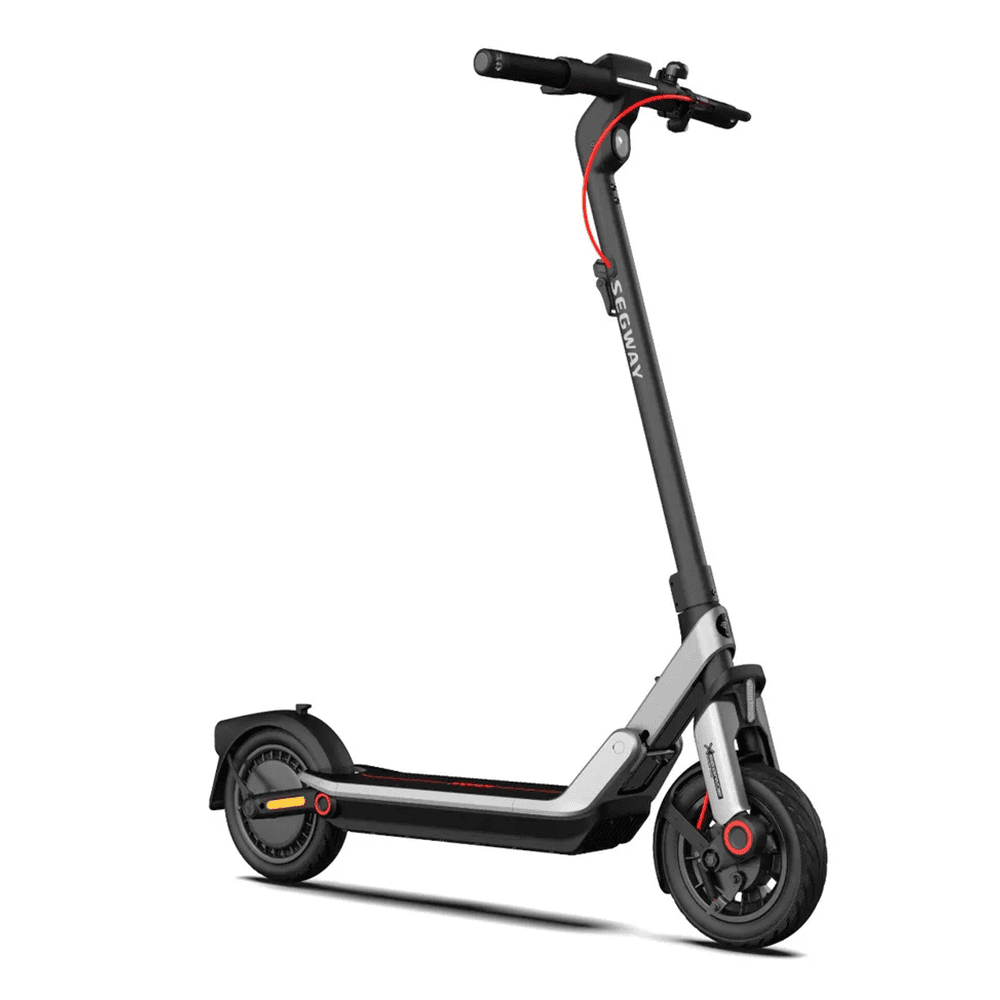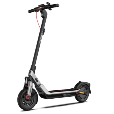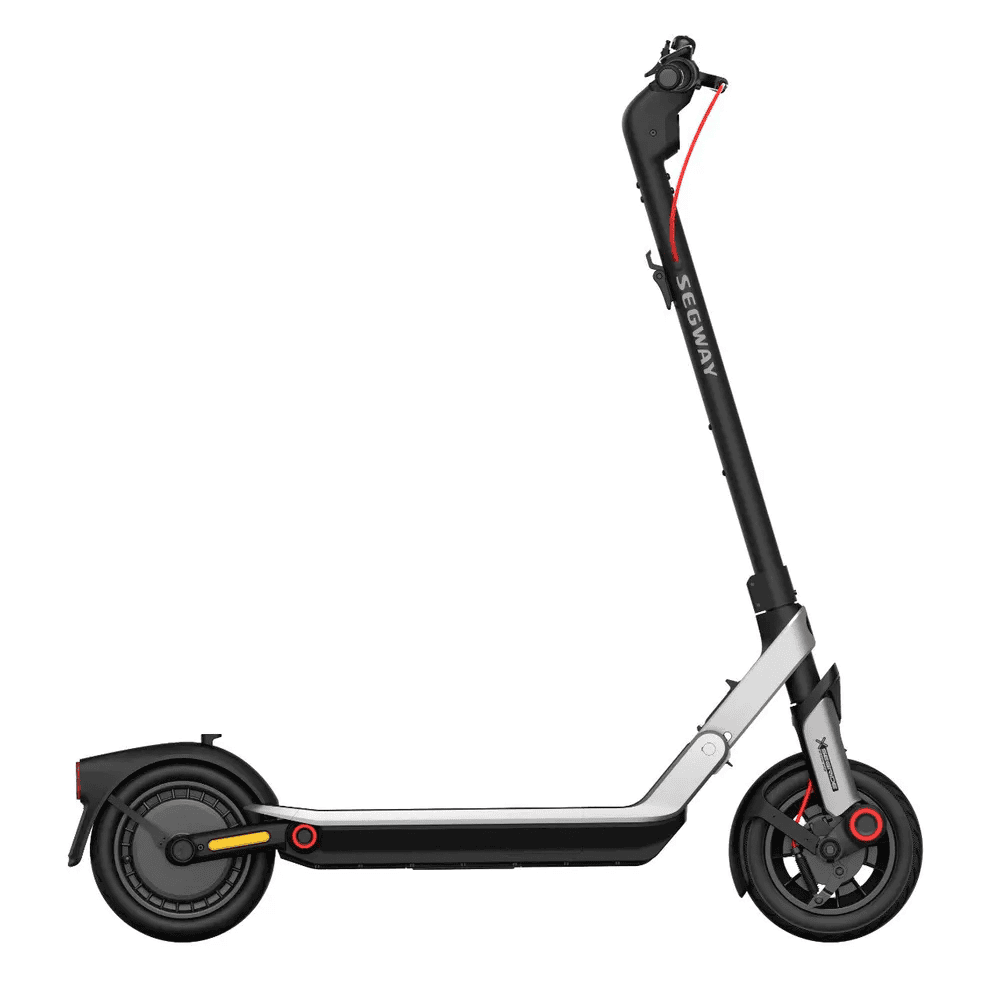 Городской складной электросамокат Ninebot KickScooter E3 отличается сбалансированными характеристиками. Максимальная скорость, развиваемая E3 составляет 32 км/ч. Самокат движется плавно и мягко благодаря двойной подвеске. Передний амортизатор сглаживает небольшие неровности на дорожном покрытии, а задние пружины обеспечивают возможность мягкого съезда с бордюров или при движении по неровной местности. Электросамокат оснащён 10 дюймовыми бескамерными надувными колёсами, обеспечивающими хорошую проходимость. Самокат способен выдержать до 100 кг. Запас хода от одного заряда батареи составляет 45 км, продолжительность зарядки — 5.5 часов.
