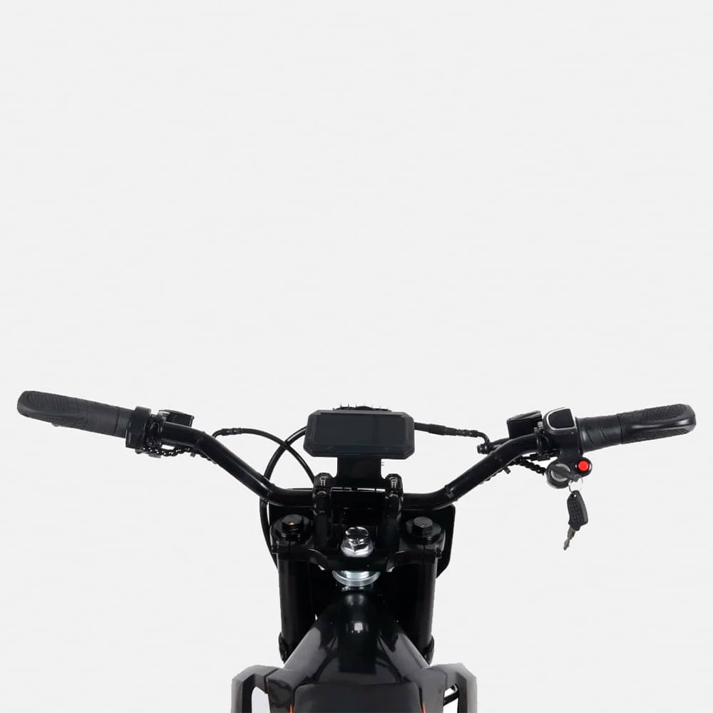 Прочная рама и усиленная конструкция рассчитаны на высокие нагрузки и интенсивную эксплуатацию. Широкие внедорожные шины гарантируют отличное сцепление с поверхностью и устойчивость на сложных участках маршрута. Максимальная нагрузка до 120 кг позволяет комфортно использовать электропитбайк большинству райдеров и брать с собой дополнительное снаряжение.