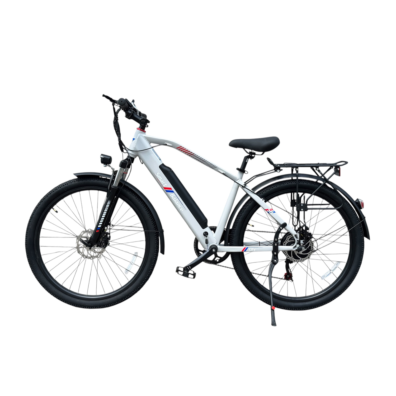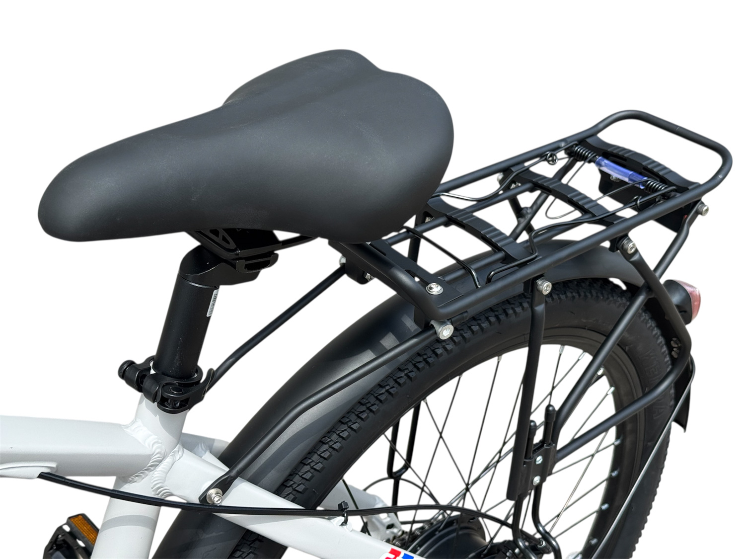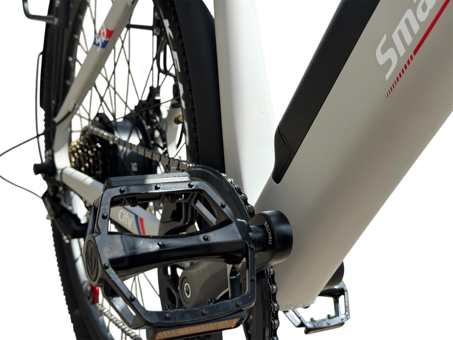 Электровелосипед Smart Balance City – практичная городская модель, которая позволит с комфортом добираться на работу, ездить за покупками или активно проводить время, устраивая велопрогулки. Для комфортного передвижения предусматривается вилка с амортизацией и колеса 27.5 дюймов. Передняя фара и стоп сигнал сзади повышает безопасность при езде в вечернее и ночное время. Алюминиевая рама облегчает вес фэт-байка. Благодаря багажнику можно брать с собой необходимые вещи. Электрический велосипед имеет сдержанный дизайн, что делает его подходящим выбором для любого возраста. Быстрое замедление и плавную остановку без рывков обеспечивают надежные дисковые тормоза.