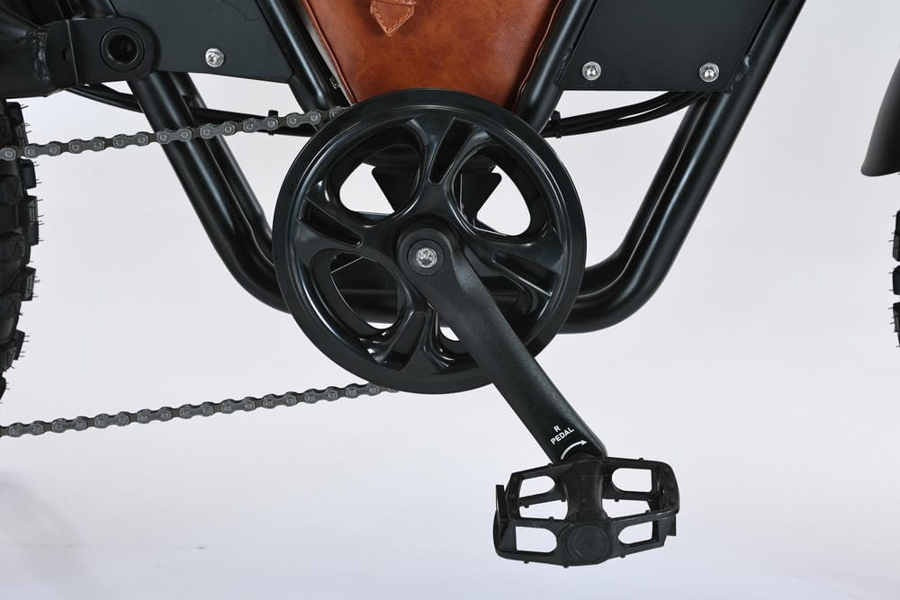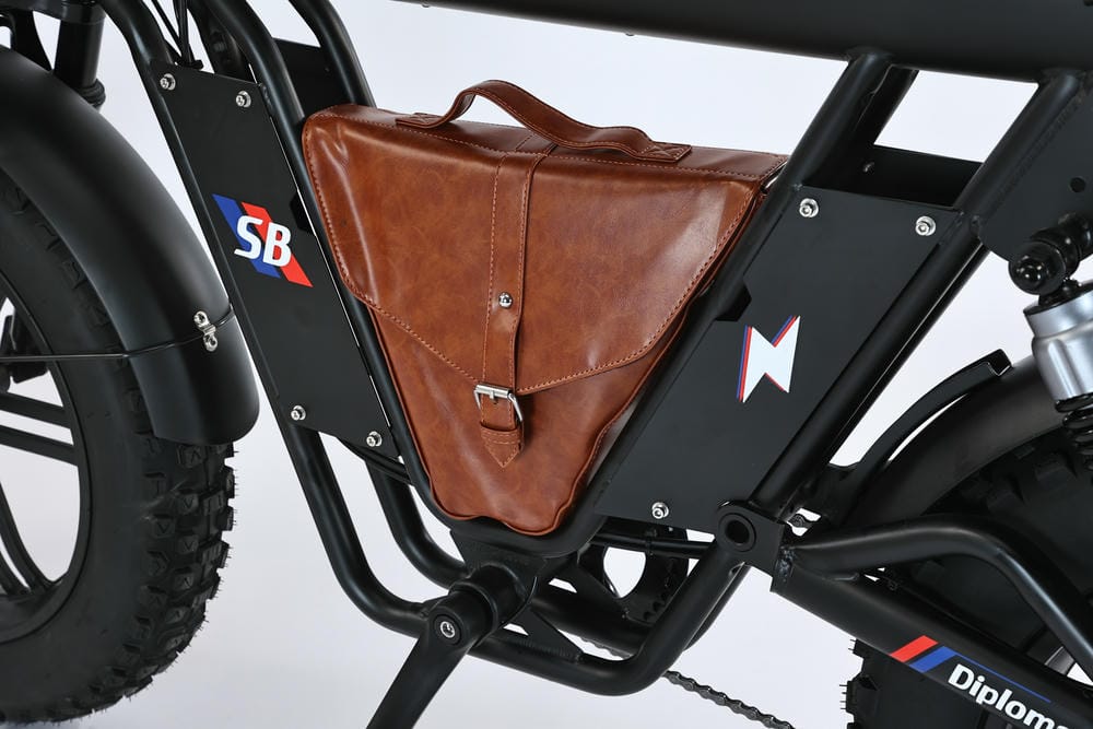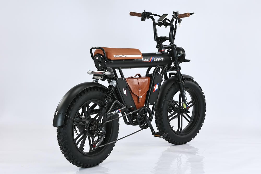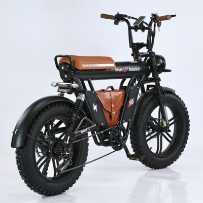 SmartBalance Diplomat — это электрический фэтбайк с необычным дизайном и названием, благодаря “дипломату” — удобной сумке для перевозки вещей, которая идет в комплекте. Эта модель обеспечивает комфортную езду с помощью широких покрышек, позволяющих преодолевать сложные участки дороги, и 4 амортизаторов: двух спереди и двух сзади. Все органы управления сосредоточены на руле: слева — кнопка звукового сигнала, модуль управления светом и поворотниками, рычаг тормоза и модуль управления электропередачами; справа — переключатель механических передач, курок газа и рычаг тормоза. В центре размещен дисплей бортового компьютера. Аккумуляторная батарея на 20 Ач находится под сиденьем, остается быстросъемной и обеспечивает оптимальный баланс между запасом хода и весом велосипеда. С 7 скоростями от Shimano, Diplomat справится с бездорожьем и сложными участками, такими как грязь или песок, благодаря пониженным передачам.