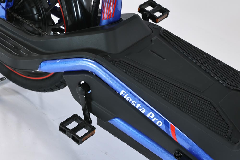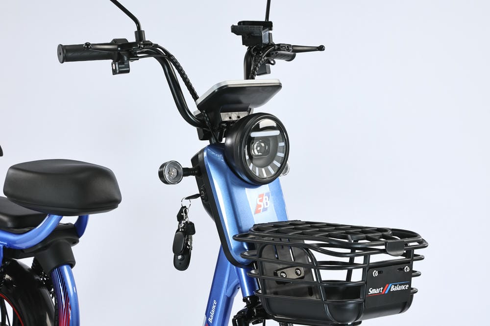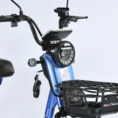 SmartBalance Fiesta Pro представляет собой гибрид электровелосипеда и электроскутера, созданный для комфортной езды вдвоем. Модель оснащена удобной закрывающейся корзиной, востребованной у дачников и рыбаков, и зеркалами заднего вида. В числе приятных бонусов — штатный держатель для телефона, позволяющий удобно разместить навигатор с маршрутом прямо перед глазами. На многофункциональном руле слева располагаются звуковой сигнал, рычаг тормоза и модуль управления поворотниками, посередине — дисплей бортового компьютера со всей необходимой информацией о поездке, а справа — переключатель электроскоростей и рычаг тормоза. Закрывающаяся корзина, установленная спереди, решает проблему неудобства езды с рюкзаком, особенно летом. Fiesta Pro предлагает три режима езды: обычный велосипедный (с помощью педалей), ассистированный (помощь электродвигателя при педалировании) и режим электроскутера (движение за счет электродвигателя).