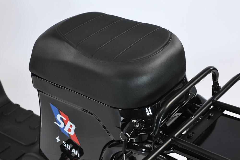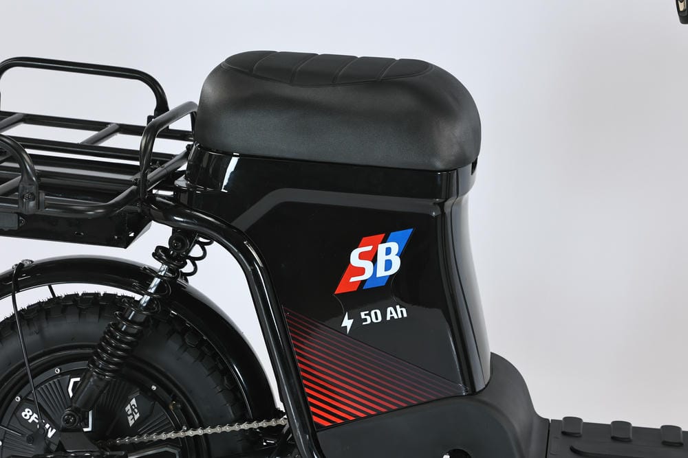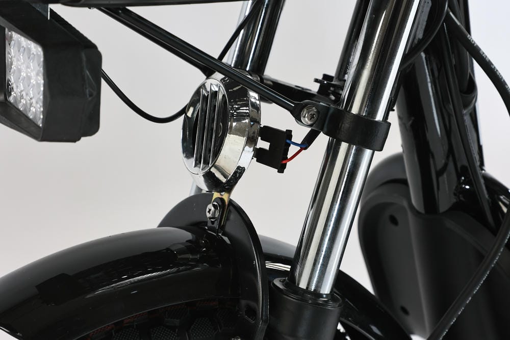 Ветровое стекло защитит от ветра, пыли и мелких осадков, обеспечивая комфортную поездку в любых погодных условиях. Большой дисплей и держатель для телефона с USB позволяют удобно использовать навигацию и заряжать устройство во время движения. Широкое мягкое сиденье обеспечивает комфортные поездки без усталости даже на дальние расстояния. Освещение включает большую переднюю фару, стоп-сигнал и указатели поворота. Для езды доступны три режима: режим велосипеда (без мотора, только педали), режим мопеда (только при помощи мотора, зажав ручку газа) и режим ассистента (небольшое усилие на педали активирует мотор, после чего велосипед быстро ускоряется).