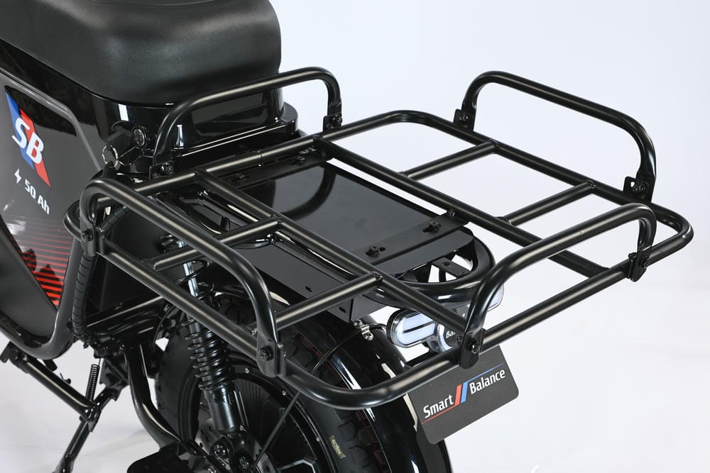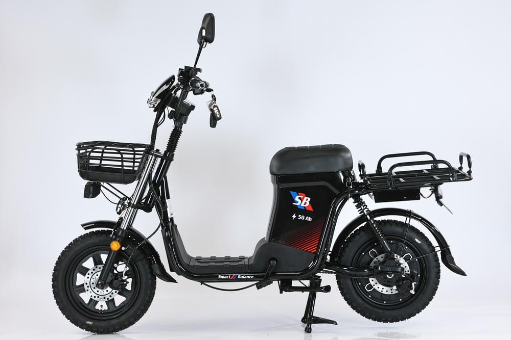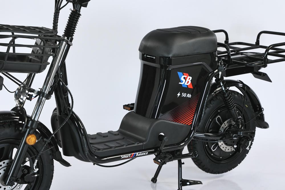 SmartBalance Master Pro — это электрический велосипед, объединяющий высокую мощность и максимальный комфорт. Он оборудован вместительным багажником и корзиной, что делает его прекрасным выбором как для курьеров служб доставки, так и для перевозки личных вещей. Мотор-колесо с гравировкой 240 Вт обеспечивает быстрый старт и уверенную езду даже на сложных маршрутах. Съемный аккумулятор 60 В 21 Ач позволяет преодолевать значительные расстояния без частой подзарядки. Колеса диаметром 16 дюймов с вседорожными покрышками подходят как для городских улиц, так и для легких внедорожных условий.