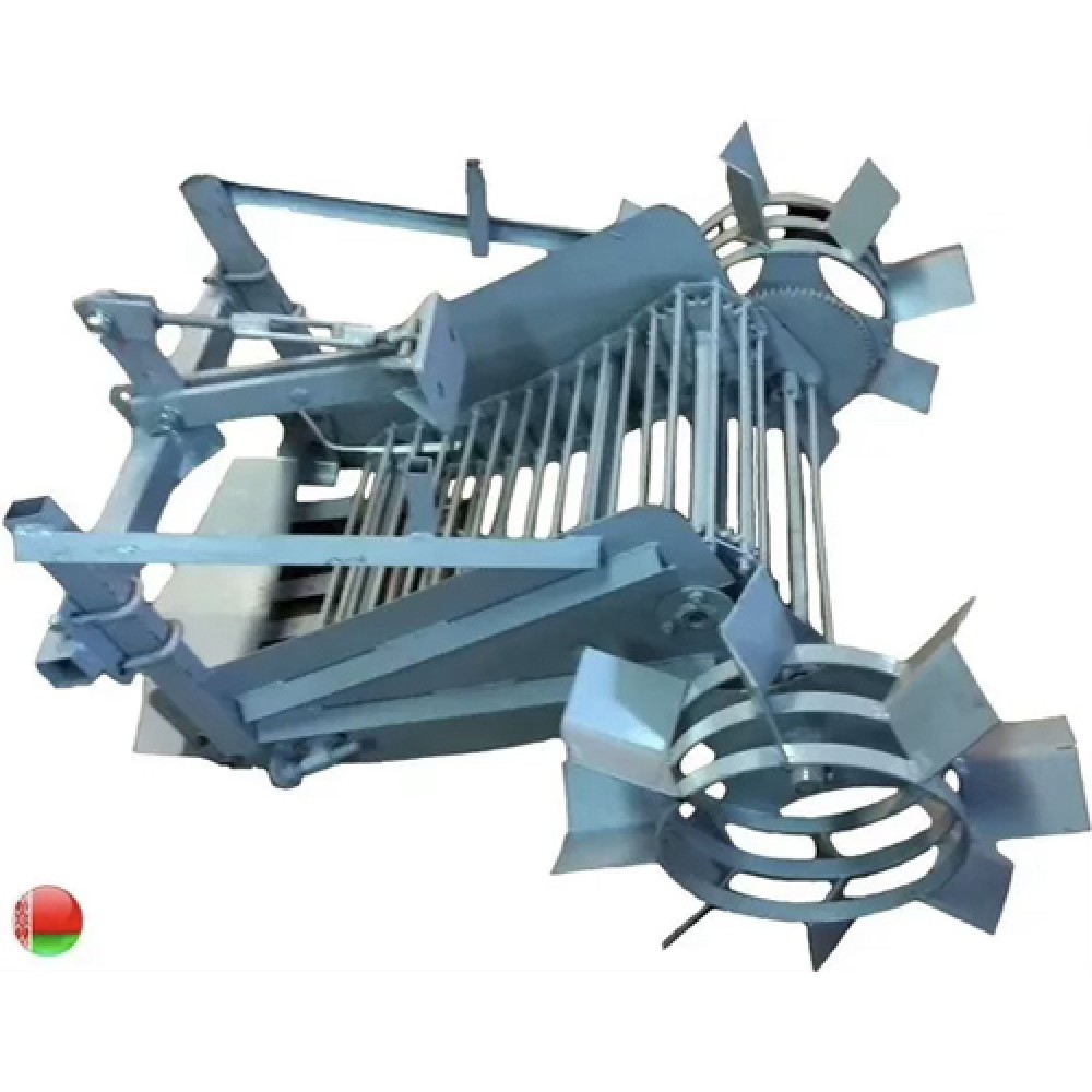 Копалка с ленточным транспортером вместо решётки. Нож подрезает пласт, клубни с землёй подаются на движущуюся ленту, где почва осыпается в ячейках, а картофель сходит с её конца.