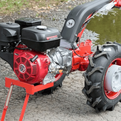• Дифференциал и блокировка руля Несмотря на внушительный вес (176 кг), управлять мотоблоком легко. Система разблокировки дифференциала позволяет развернуть машину на месте буквально одним пальцем.